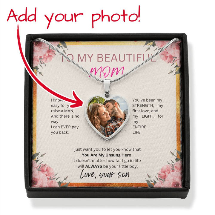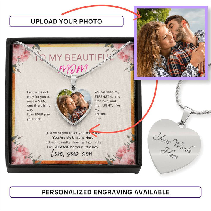 Easily upload your picture and surprise her with a touching message card, all from Hearlock Jewelry.